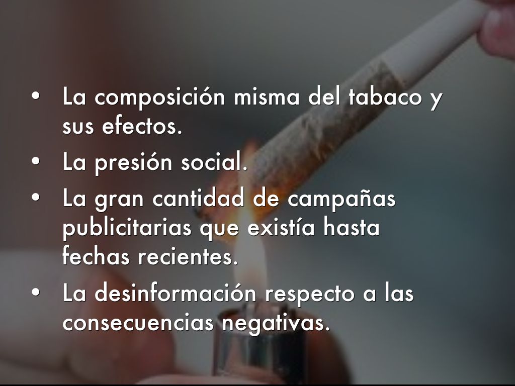 El hábito del tabaco produce daños de diversa naturaleza en la salud y es responsable de padecimientos que se ubican entre las principales causas de muerte.