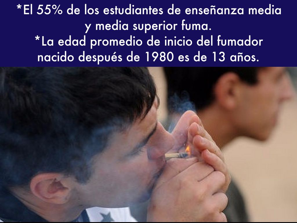 *La edad promedio de inicio del fumador nacido después de 1980 es de 13 años.