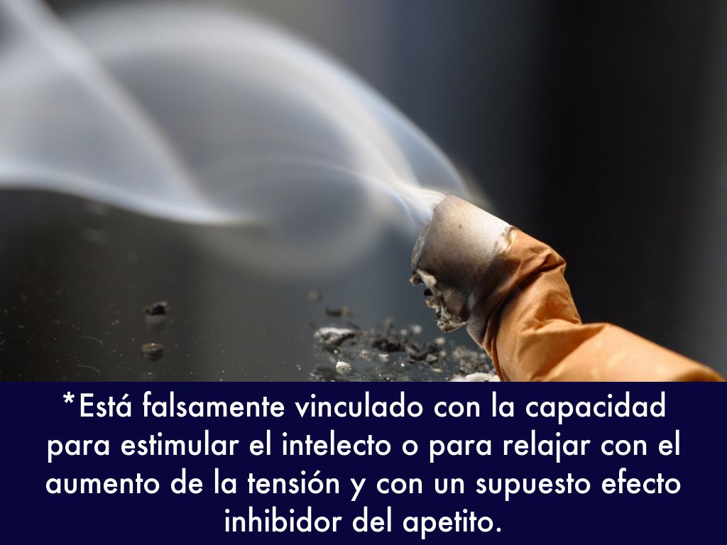 *Está falsamente vinculado con la capacidad para estimular el intelecto o para relajar con el aumento de la tensión y con un supuesto efecto inhibidor del apetito.