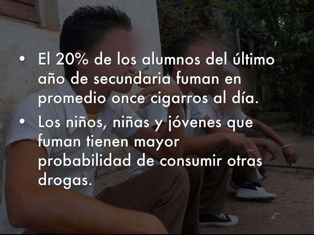 • El 20% de los alumnos del último año de secundaria fuman en promedio once cigarros al día.