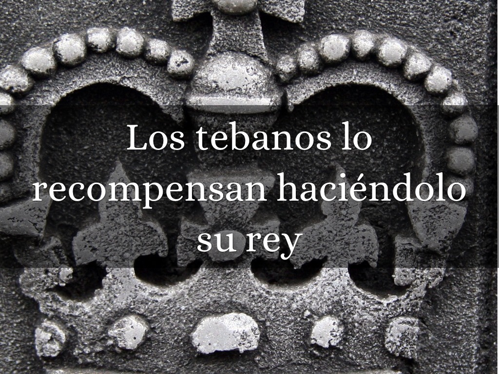 Libera a Tebas de la Esfinge, la cual, muy molesta, se suicida