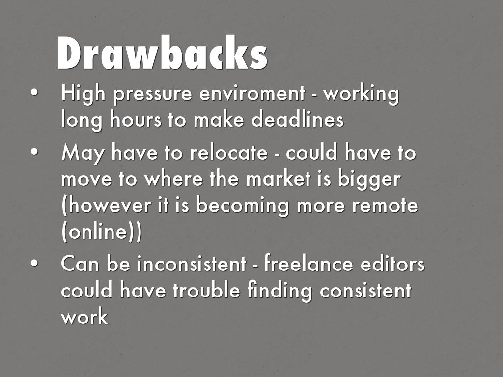 • Can be inconsistent - freelance editors could have trouble finding consistent work
