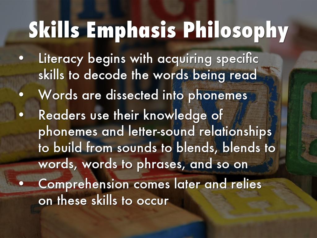 Readers use their knowledge of phonemes and letter-sound relationships to build from sounds to blends, blends to words, words to phrases, and so on