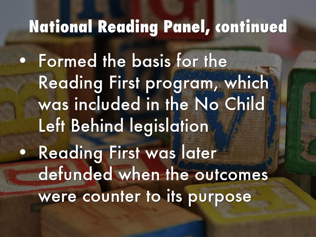 Formed the basis for the Reading First program, which was included in the No Child Left Behind legislation