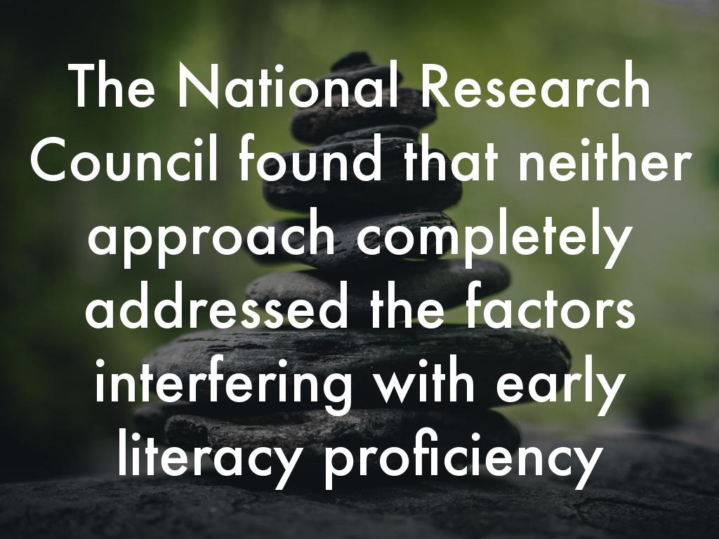 The National Research Council found that neither approach completely addressed the factors interfering with early literacy proficiency