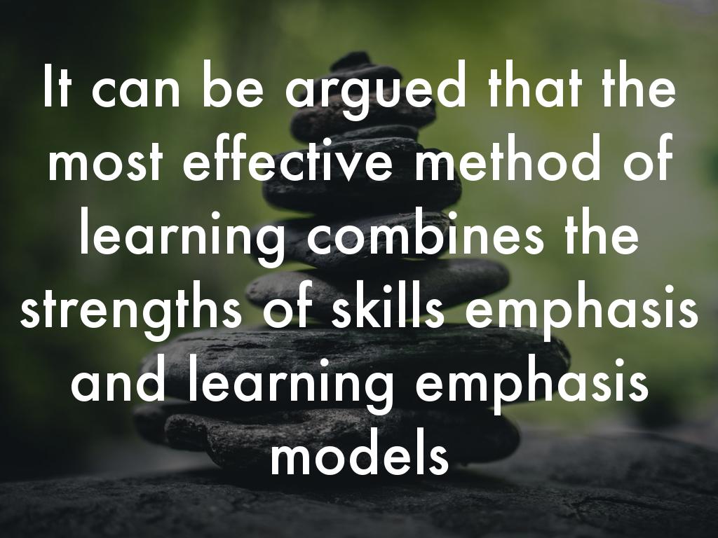 It can be argued that the most effective method of learning combines the strengths of skills emphasis and learning emphasis models
