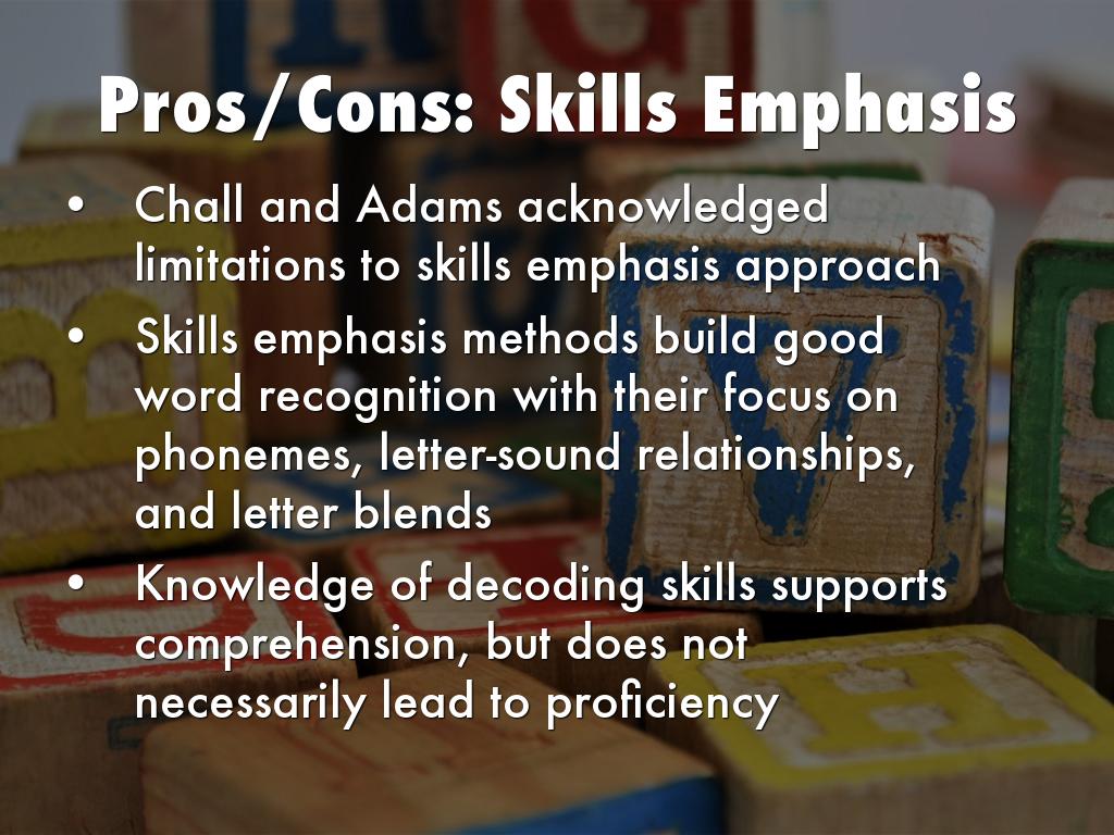 Chall and Adams acknowledged limitations to skills emphasis approach