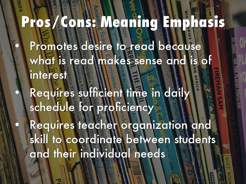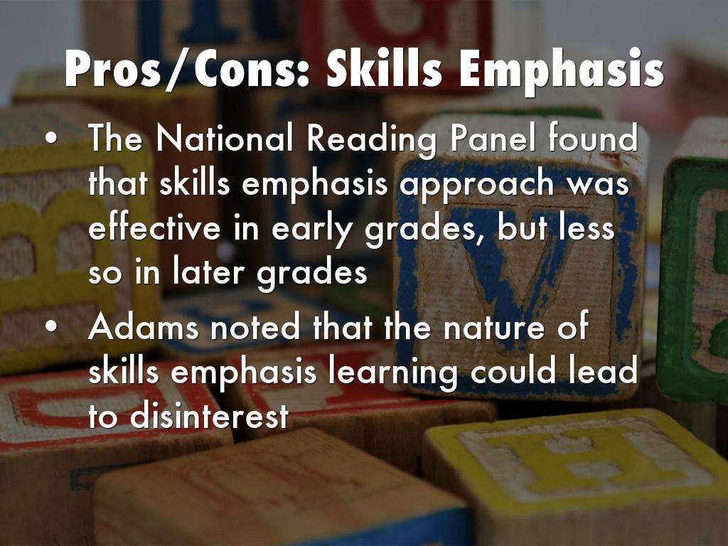 The National Reading Panel found that skills emphasis approach was effective in early grades, but less so in later grades