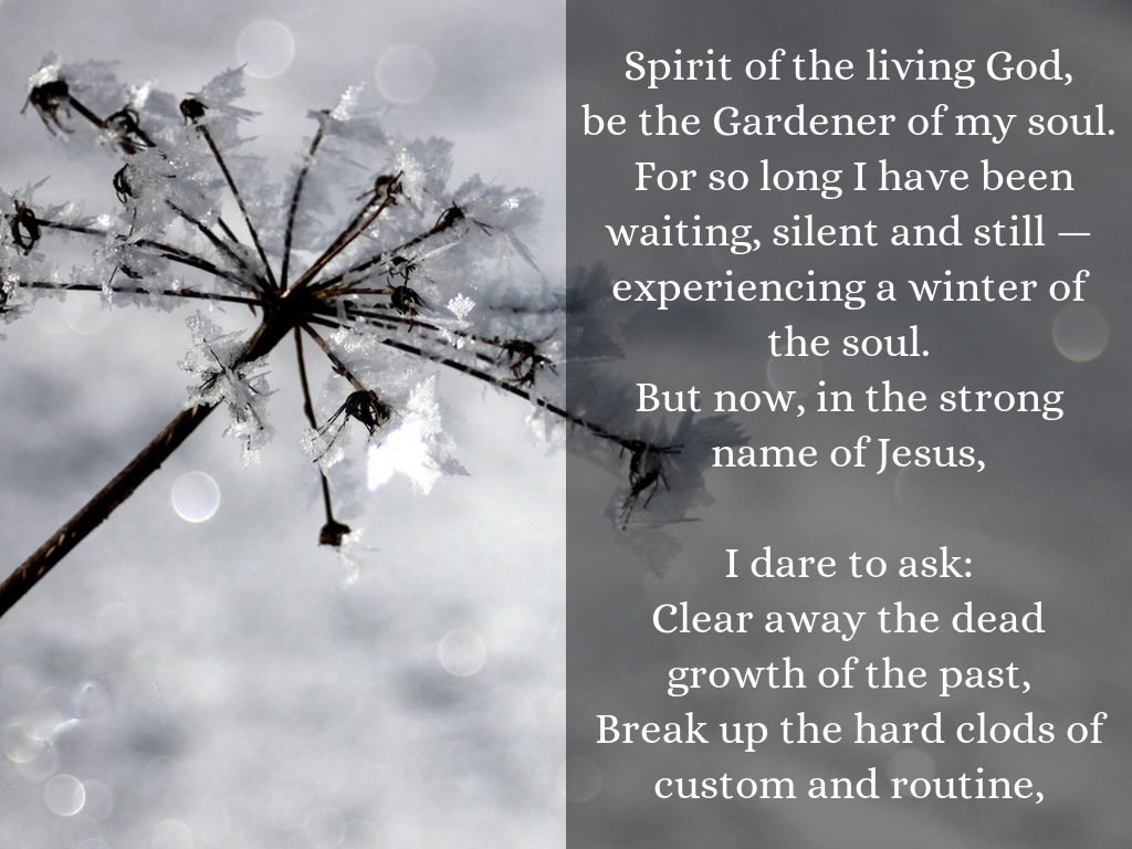 be the Gardener of my soul. For so long I have been waiting, silent and still — experiencing a winter of the soul.