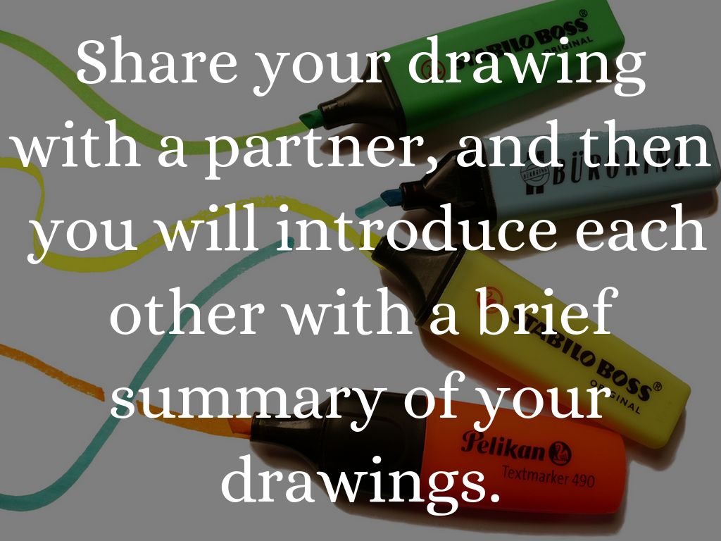 Share your drawing with a partner, and then you will introduce each other with a brief summary of your drawings.