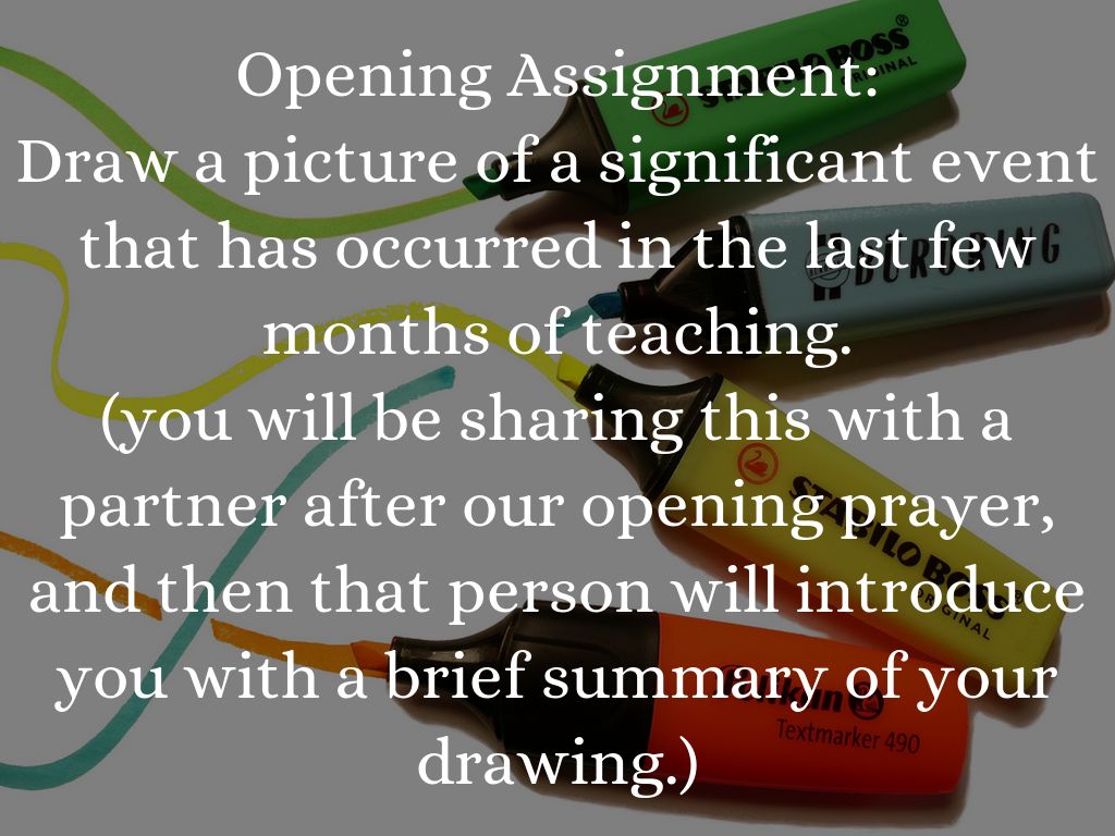 (you will be sharing this with a partner after our opening prayer, and then that person will introduce you with a brief summary of your drawing.)