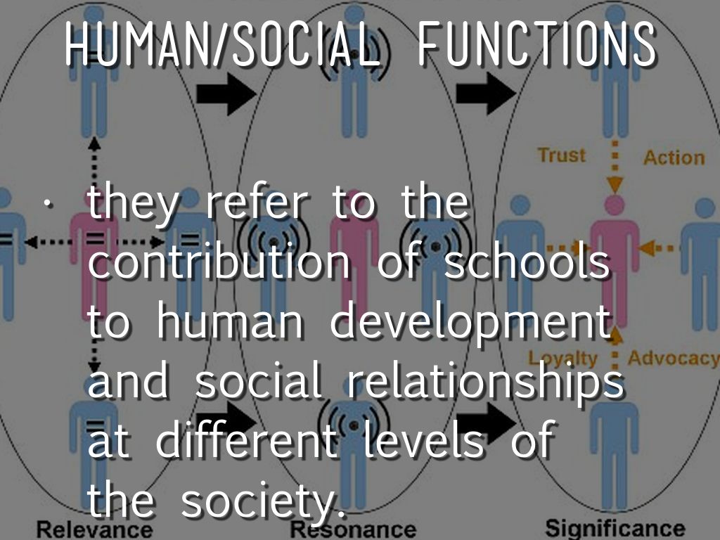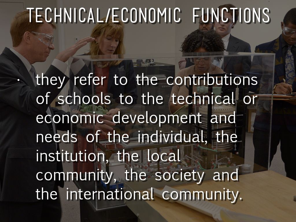 they refer to the contributions of schools to the technical or economic development and needs of the individual, the institution, the local community, the society and the international community.