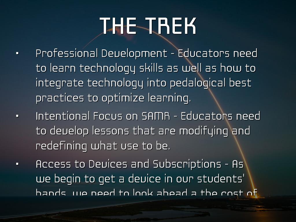 Intentional Focus on SAMR - Educators need to develop lessons that are modifying and redefining what use to be.
