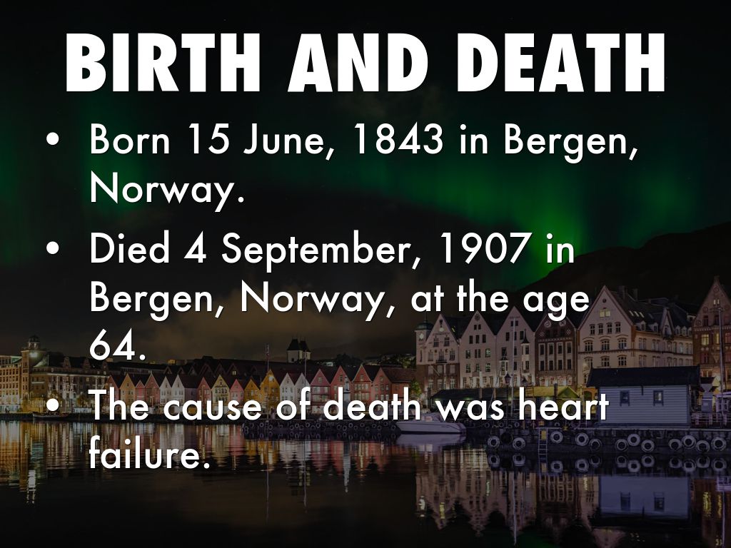 Died 4 September, 1907 in Bergen, Norway, at the age 64.
