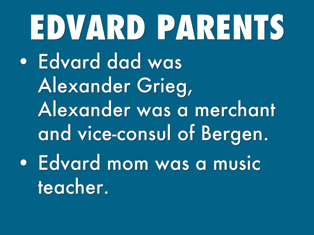 Edvard dad was Alexander Grieg, Alexander was a merchant and vice-consul of Bergen.