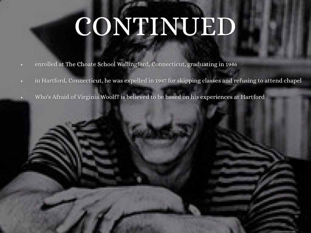 • Who's Afraid of Virginia Woolf? is believed to be based on his experiences at Hartford