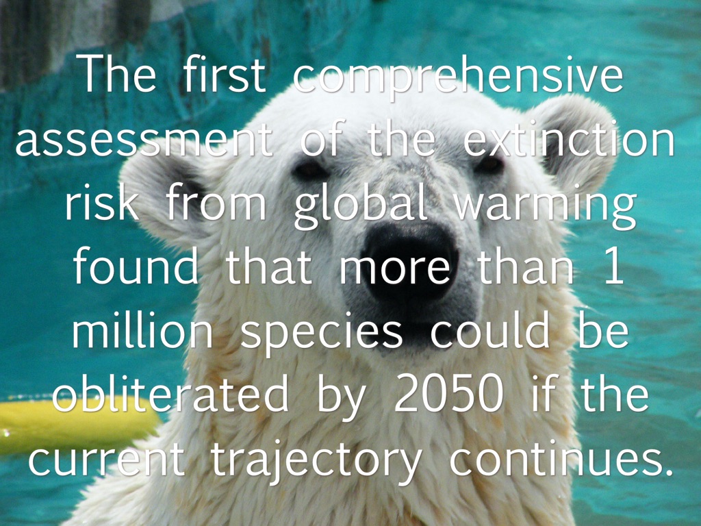 The first comprehensive assessment of the extinction risk from global warming found that more than 1 million species could be obliterated by 2050 if the current trajectory continues.