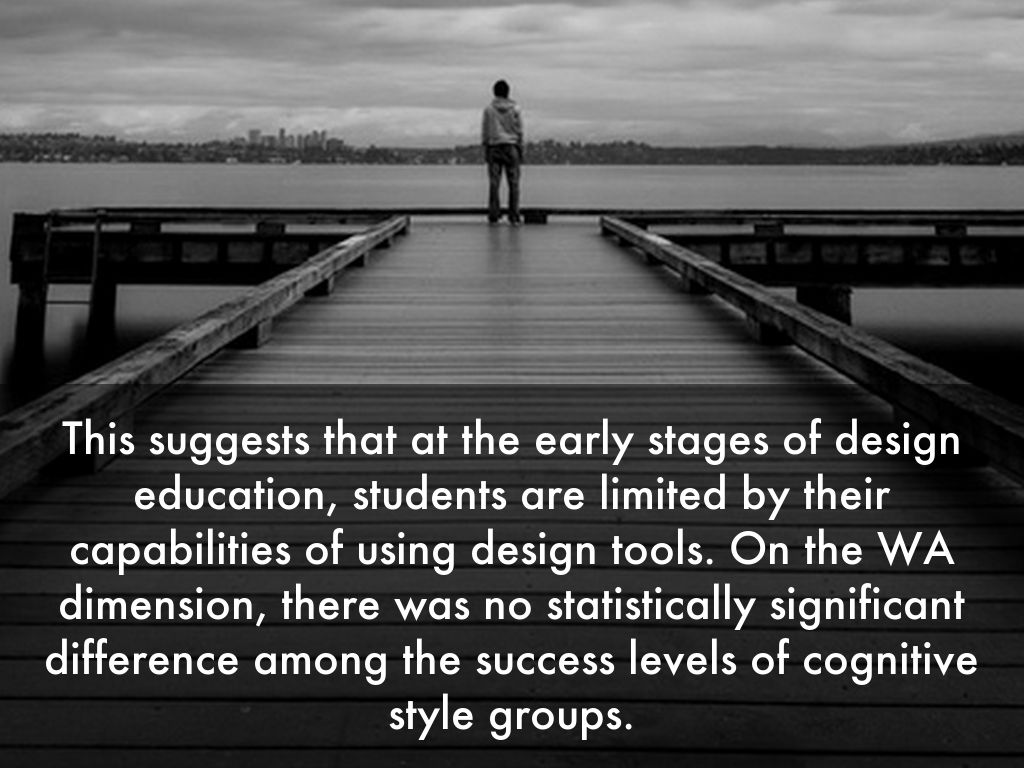 This suggests that at the early stages of design education, students are limited by their capabilities of using design tools. On the WA dimension, there was no statistically significant difference among the success levels of cognitive style groups.