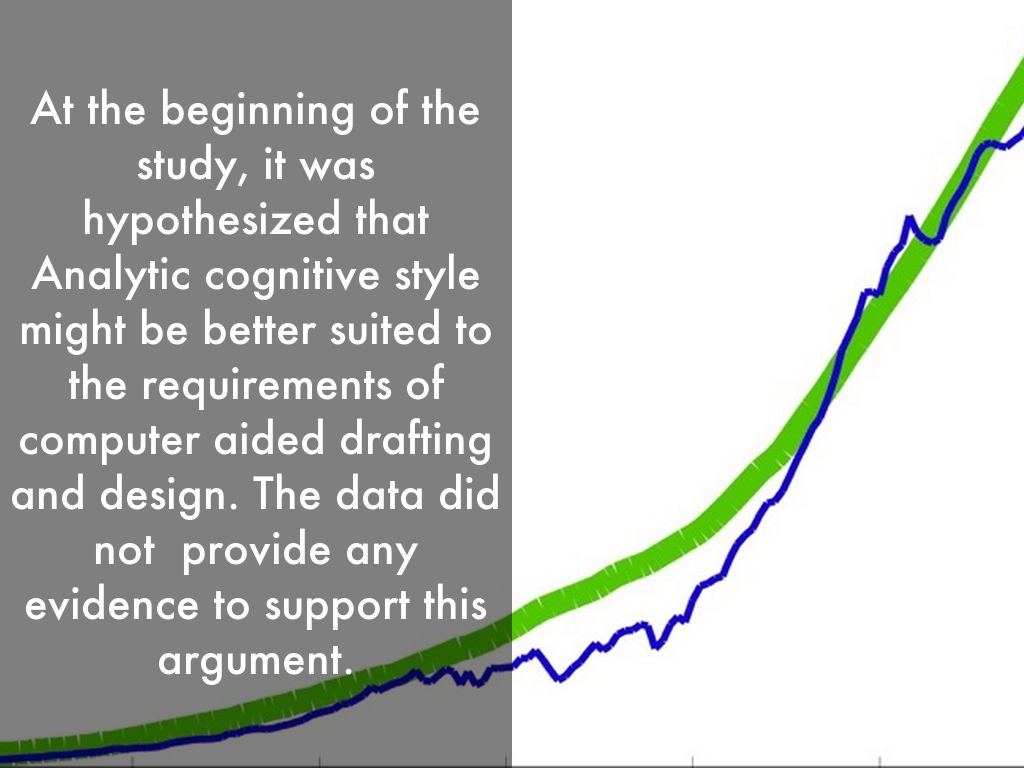At the beginning of the study, it was hypothesized that Analytic cognitive style might be better suited to the requirements of computer aided drafting and design. The data did not provide any evidence to support this argument.