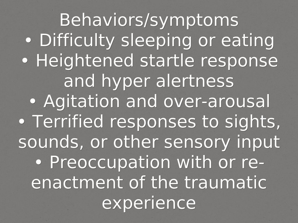 • Terrified responses to sights, sounds, or other sensory input
