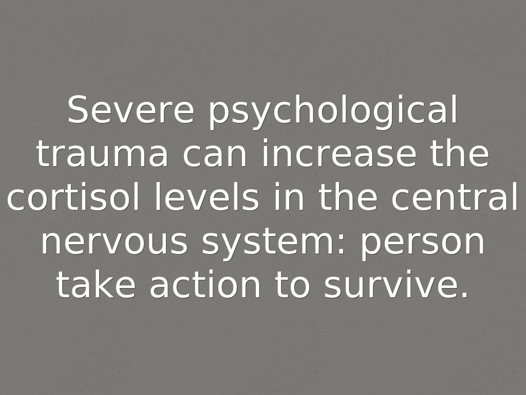 Severe psychological trauma can increase the cortisol levels in the central nervous system: person take action to survive.