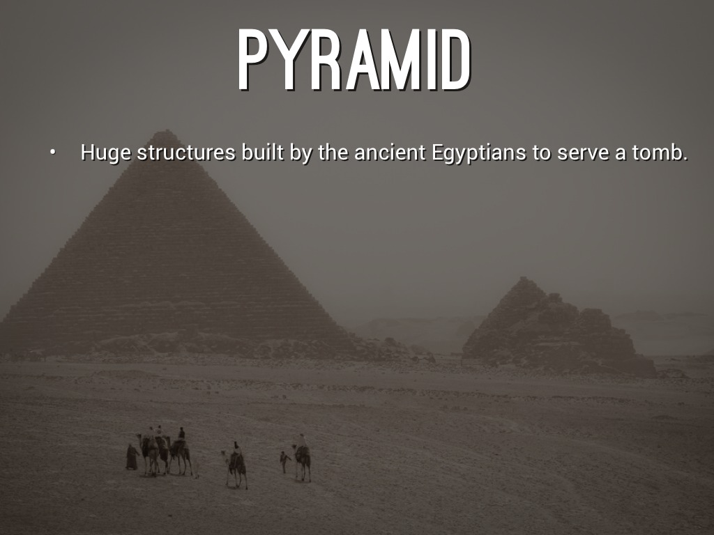 Huge structures built by the ancient Egyptians to serve a tomb.