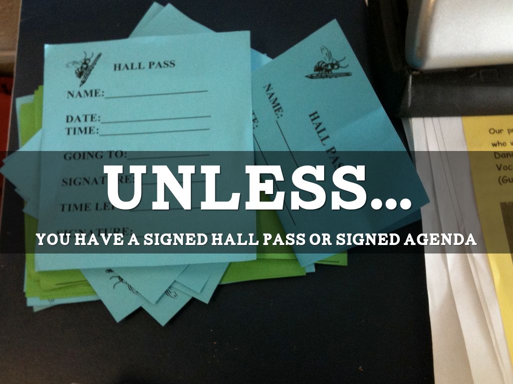 YOU HAVE A SIGNED HALL PASS OR SIGNED AGENDA