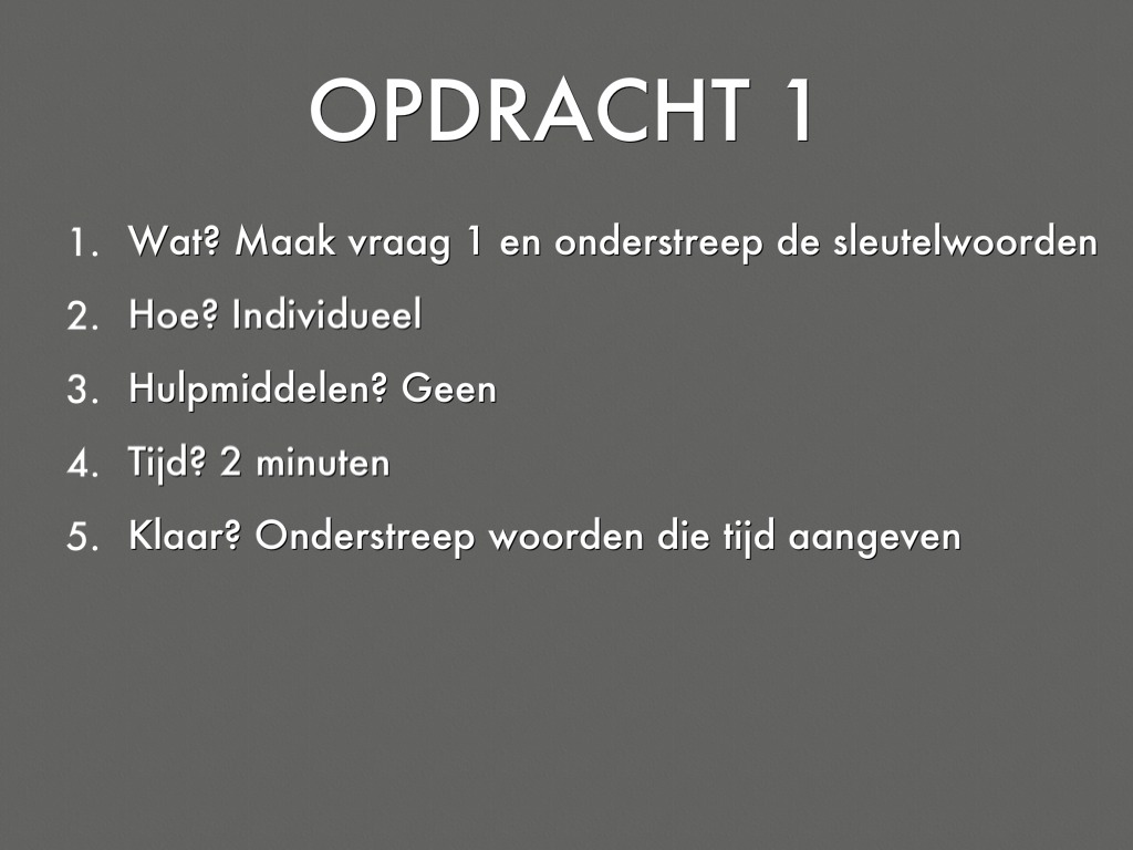 MAAK VRAAG 1 EN ONDERSTREEP SLEUTELWOORDEN