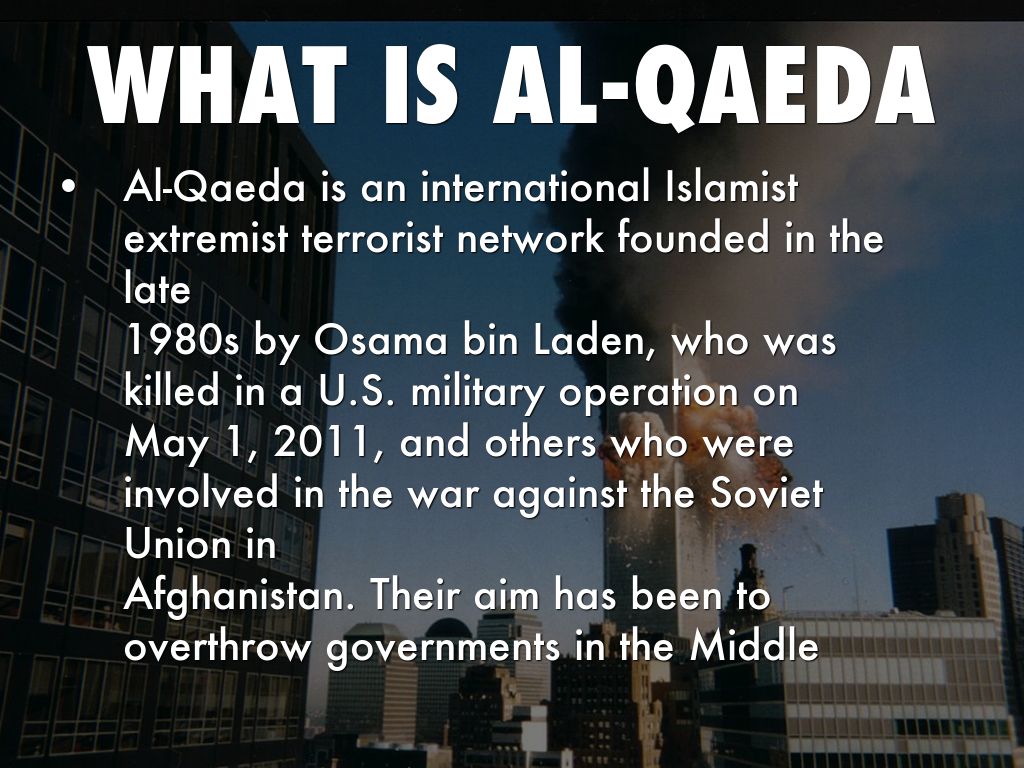 Al-Qaeda is an international Islamist extremist terrorist network founded in the late