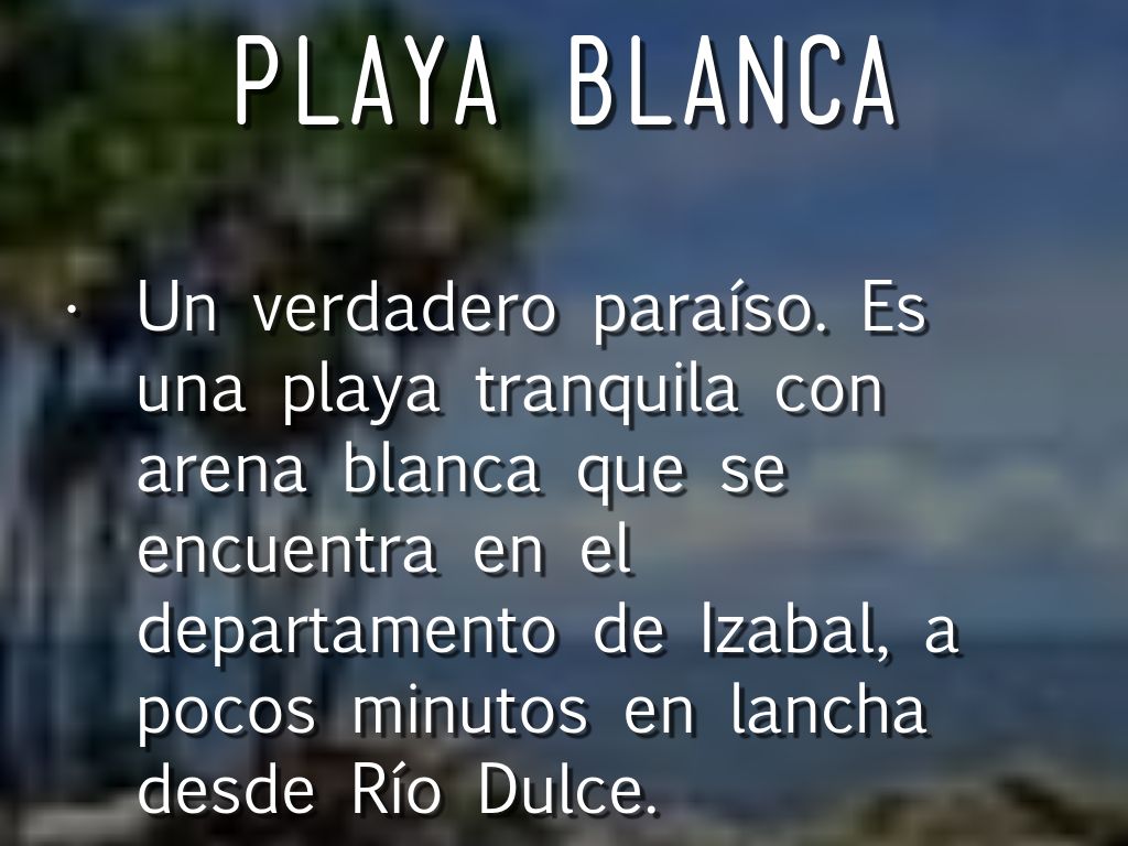 Un verdadero paraíso. Es una playa tranquila con arena blanca que se encuentra en el departamento de Izabal, a pocos minutos en lancha desde Río Dulce.
