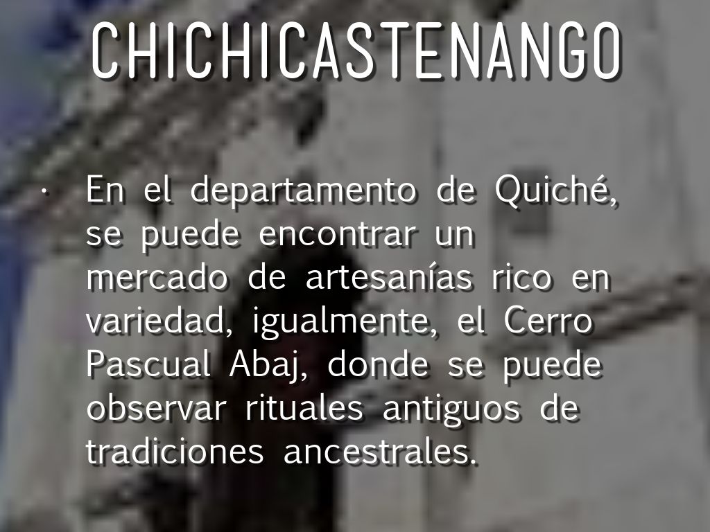 En el departamento de Quiché, se puede encontrar un mercado de artesanías rico en variedad, igualmente, el Cerro Pascual Abaj, donde se puede observar rituales antiguos de tradiciones ancestrales.