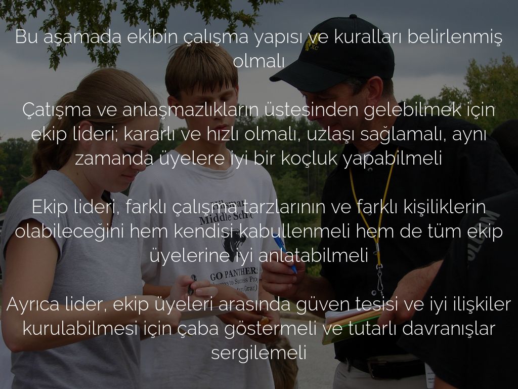 - Ekip daha uyumlu, üyelerin moralleri yüksek, birbirine güven oluşmaya başlamış