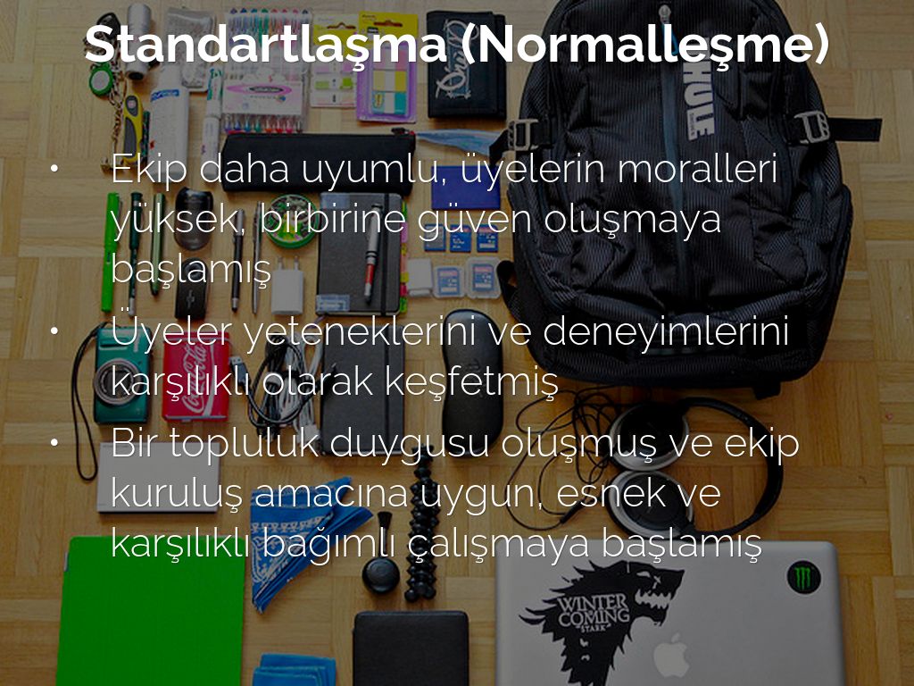 Standartlaşma (Normalleşme): Çatışmaların çözümlenmesi ve ekibin nasıl çalışacağı üzerine konsensus oluşması