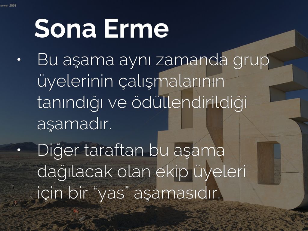 - Diğer taraftan bu aşama dağılacak olan ekip üyeleri için bir “yas” aşamasıdır.