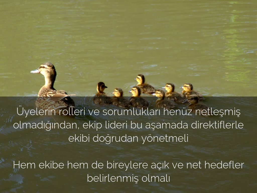 Üyelerin rolleri ve sorumlukları henüz netleşmiş olmadığından, ekip lideri bu aşamada direktiflerle ekibi doğrudan yönetmeli