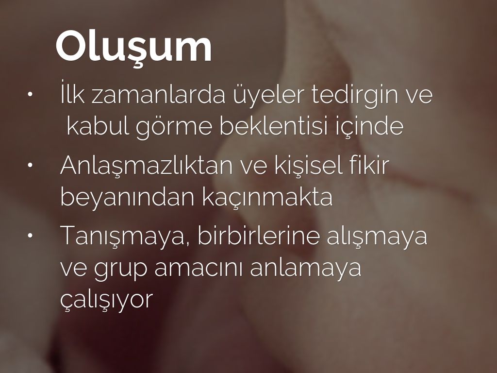 - Tanışmaya, birbirlerine alışmaya ve grup amacını anlamaya çalışıyor