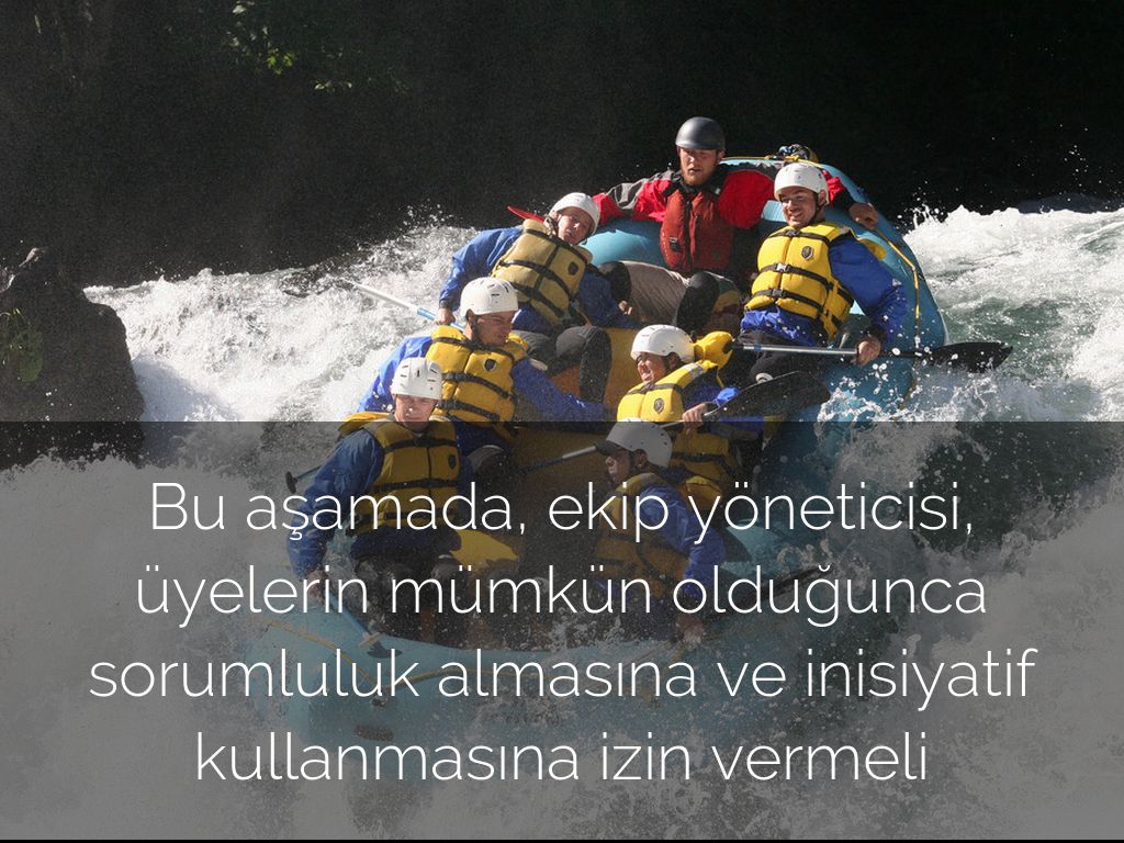 Bu aşamada, ekip yöneticisi, üyelerin mümkün olduğunca sorumluluk almasına ve inisiyatif kullanmasına izin vermeli