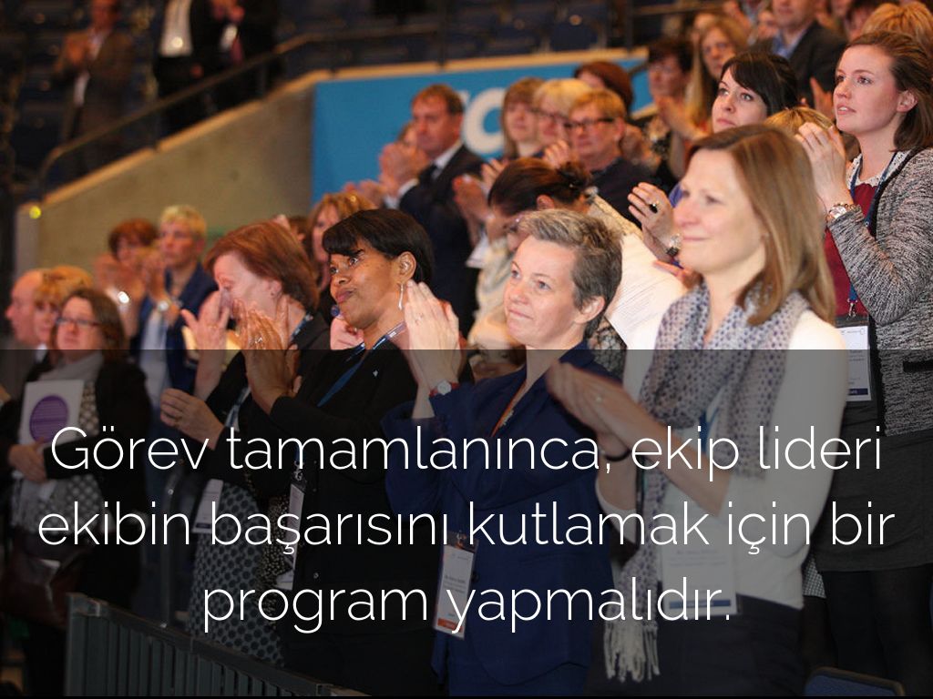 Görev tamamlanınca, ekip lideri ekibin başarısını kutlamak için bir program yapmalıdır.
