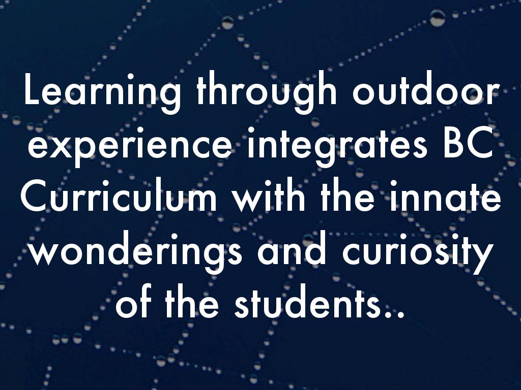 Learning through outdoor experience integrates BC Curriculum with the innate wonderings and curiosity of the students..