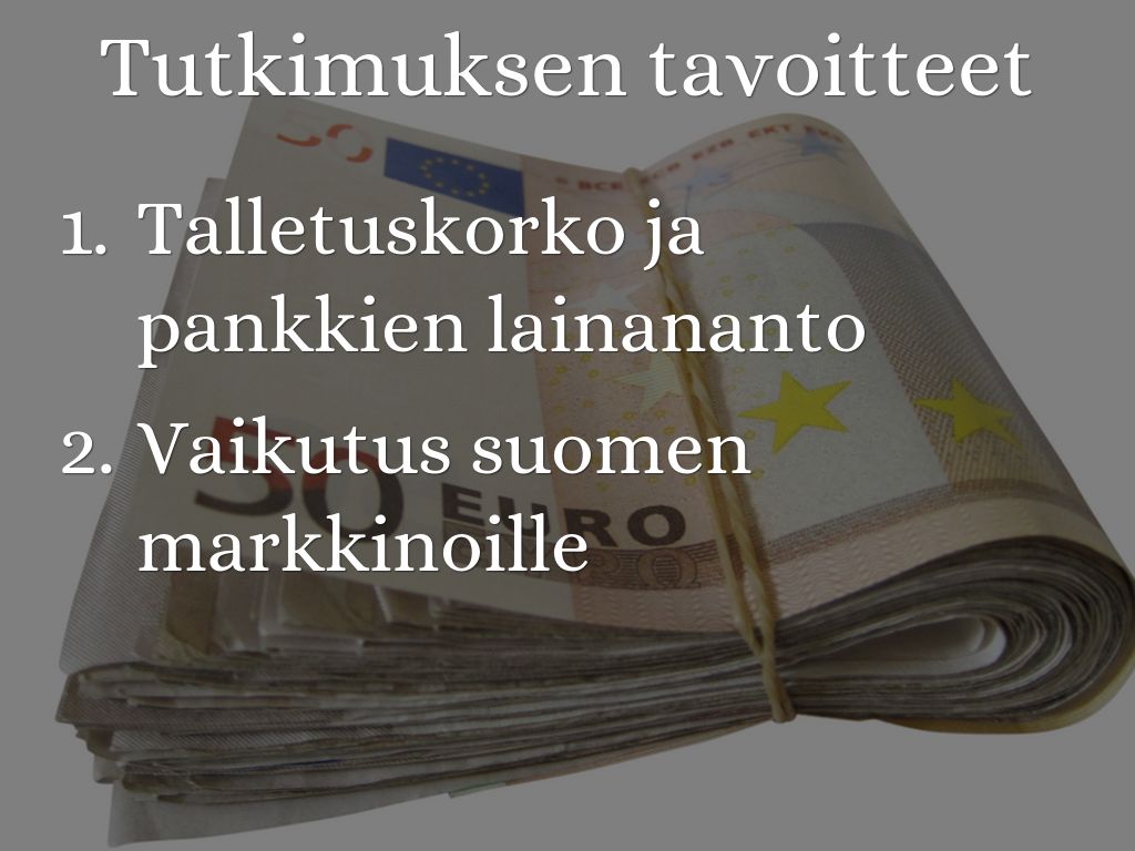 • Talletuskorko ja pankkien lainananto