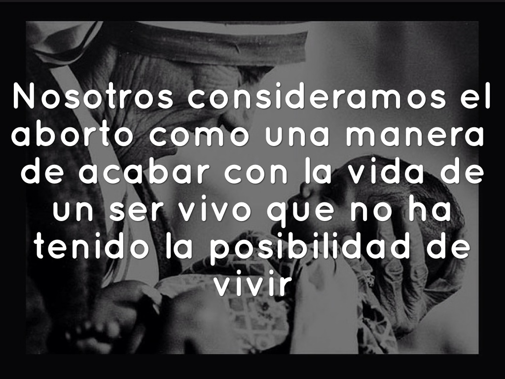 Nosotros consideramos el aborto como una manera de acabar con la vida de un ser vivo que no ha tenido la posibilidad de vivir