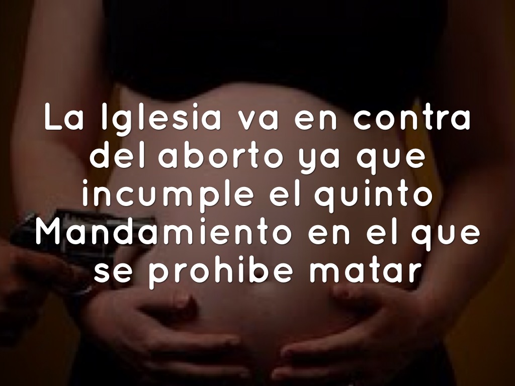 La Iglesia va en contra del aborto ya que incumple el quinto Mandamiento en el que se prohibe matar