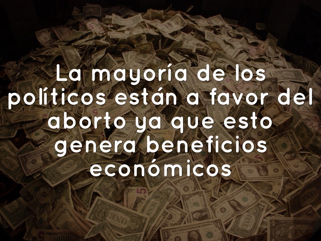La mayoría de los políticos están a favor del aborto ya que esto genera beneficios económicos