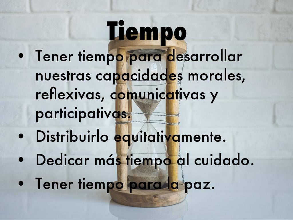 Tener tiempo para desarrollar nuestras capacidades morales, reflexivas, comunicativas y participativas.
