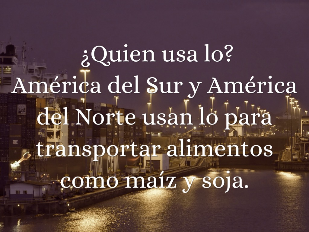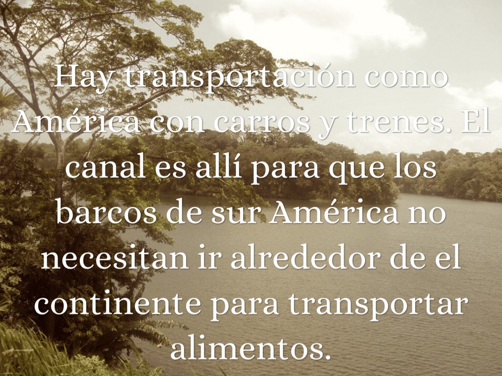 Hay transportación como América con carros y trenes. El canal es allí para que los barcos de sur América no necesitan ir alrededor de el continente para transportar alimentos.