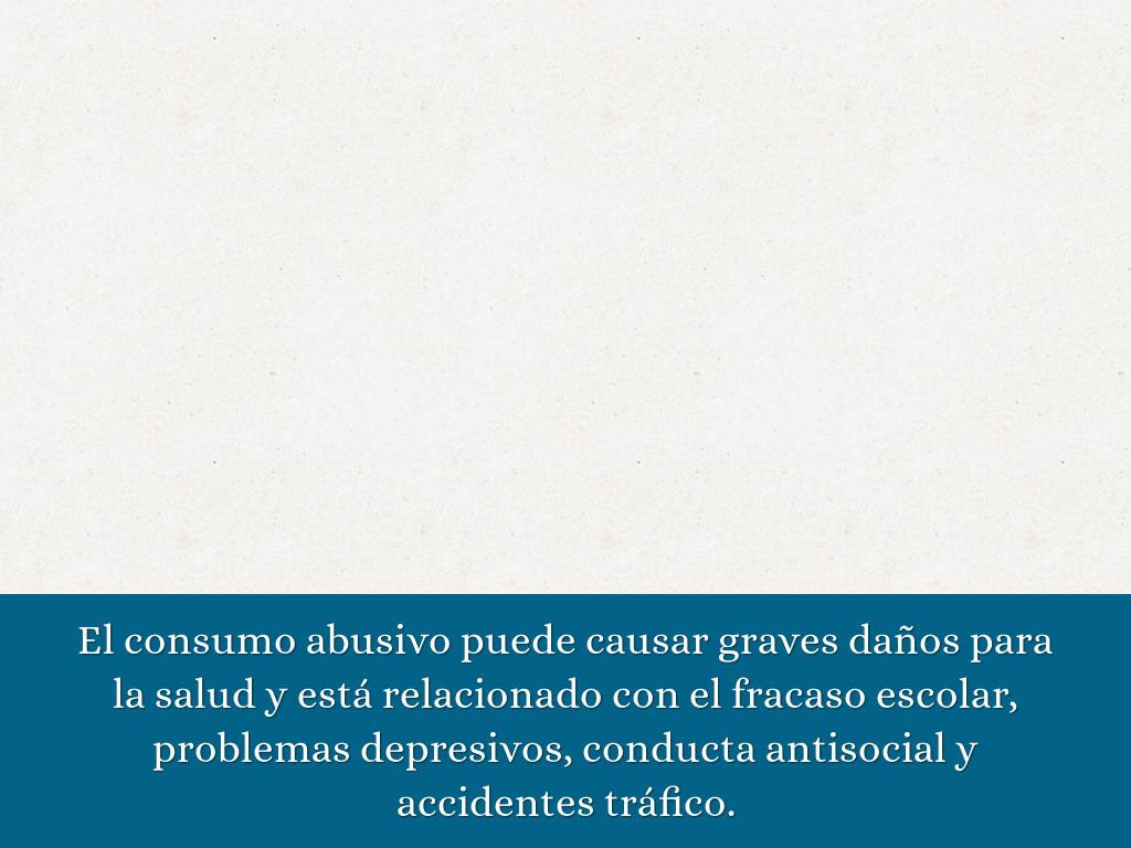 El consumo abusivo puede causar graves daños para la salud y está relacionado con el fracaso escolar, problemas depresivos, conducta antisocial y accidentes tráfico.