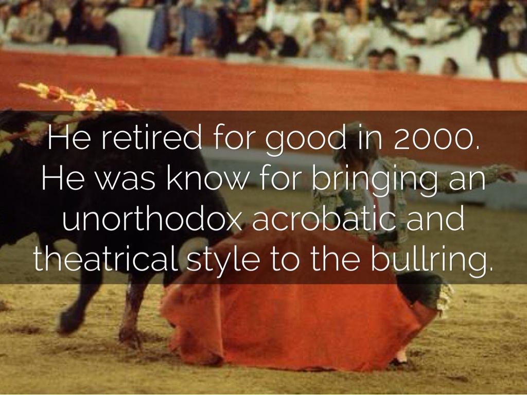 He was know for bringing an unorthodox acrobatic and theatrical style to the bullring.