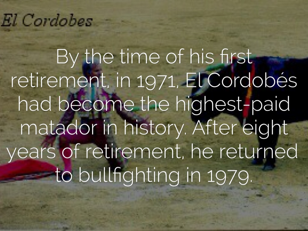 By the time of his first retirement, in 1971, El Cordobés had become the highest-paid matador in history. After eight years of retirement, he returned to bullfighting in 1979.