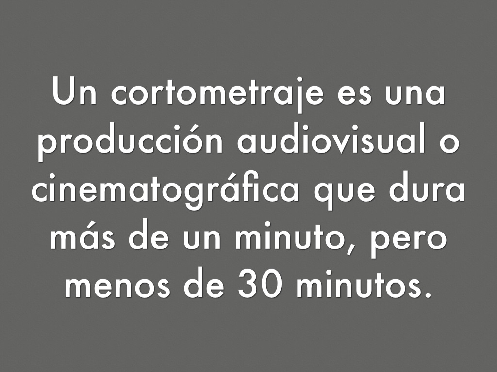 Un cortometraje es una producción audiovisual o cinematográfica que dura más de un minuto, pero menos de 30 minutos.