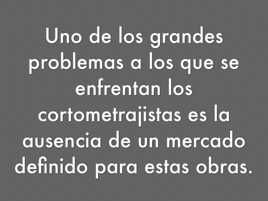 Uno de los grandes problemas a los que se enfrentan los cortometrajistas es la ausencia de un mercado definido para estas obras.